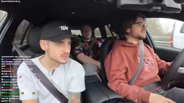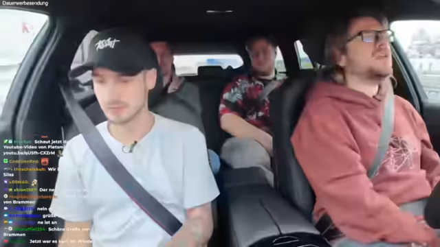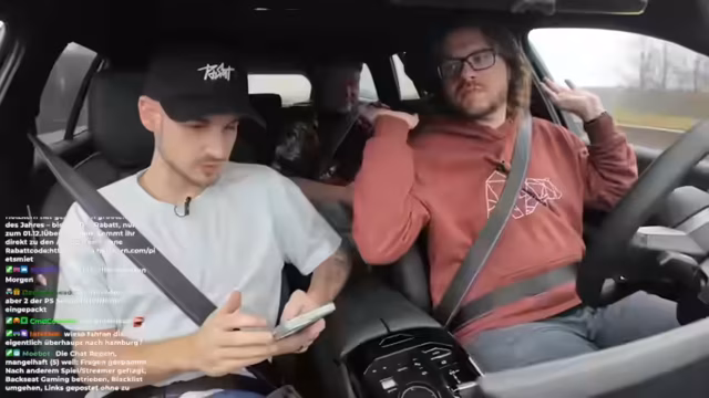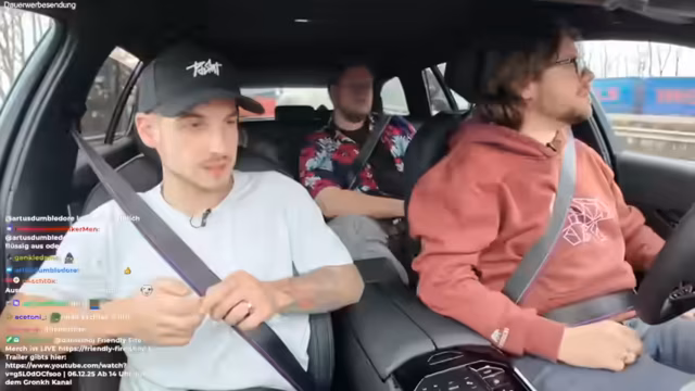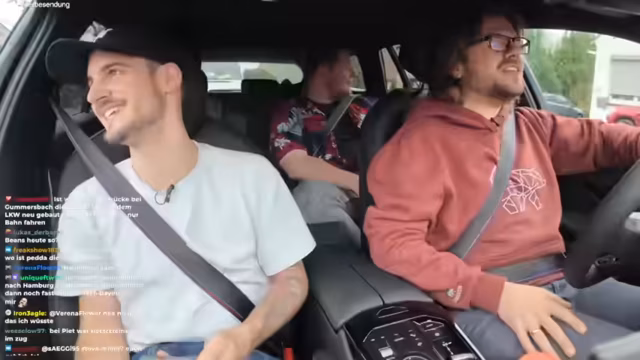 00:00:00Die Fahrt nach Hamburg zum Flughafen beginnt mit technischen Schwierigkeiten, da die Mikrofone von Jules und Sep noch ausgeschaltet sind. Brammen und Christian übernehmen die Unterhaltung, während Sep versucht, die Audio-Probleme zu beheben. Es wird über die Funktionen von BMW-Fahrzeugen diskutiert, insbesondere über den Autobahnassistenten, der bis zu einem bestimmten Datum funktioniert, und über kostenpflichtige Dienste wie Begrüßungslichter. Die Crew erwähnt auch die Black Week-Angebote von BMW. Sep berichtet, dass ein Mikrofon leer ist, obwohl alle am Vortag getestet und geladen wurden. Die Bitrate des Streams ist ebenfalls ein Thema, aber das Hauptproblem bleibt die schlechte Audioqualität von Sep. Es wird eine provisorische Gaffa-Tape-Lösung für die Kamera verwendet, was als „Pizzi-Style“ bezeichnet wird. Die Gruppe ist auf dem Weg zu Friendly Fire und plant einen Halt am Dümmersee, um das Elektroauto zu laden und etwas zu essen. Die Vorfreude auf den Abendstream und das Event in Hamburg ist groß.