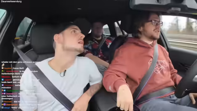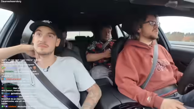 00:07:14Das Auto ist mit einem Fahrassistenten ausgestattet, der ab einer Geschwindigkeit von maximal 132 km/h die Hände vom Lenkrad nehmen lässt. Christian testet die Grenzen dieser Funktion, indem er versucht, den sogenannten "Boost-Knopf" zu betätigen. Die Streamer diskutieren über die Funktionsweise und die rechtlichen sowie technischen Aspekte autonomer Fahrsysteme. Dabei wird auch die Frage aufgeworfen, wie das Fahrzeug erkennt, ob der Fahrer aufmerksam bleibt. Darüber hinaus werden die Einstellungen im Fahrzeug besprochen, wie zum Beispiel der Begrüßungssound, der von Christian ausgeschaltet wurde. Parallel dazu gibt es immer wieder Probleme mit den Mikrofonen, die die Verständlichkeit der einzelnen Personen beeinträchtigen.