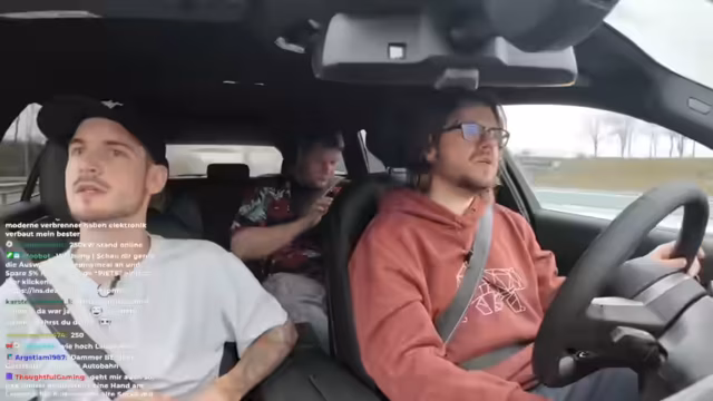 00:08:48Die Diskussion nimmt eine kuriose Wendung, als über den Wikipedia-Artikel zu „Autokunnilingus“ gesprochen wird, was für allgemeine Belustigung sorgt. Die Gruppe scherzt über die Möglichkeit, dass Menschen ohne Rippenknochen dazu in der Lage sein könnten. Es wird auch über die externe Antenne des Autos gesprochen, die als „Starlink-ähnlich“ beschrieben wird. Die Chat-Interaktion wird thematisiert, insbesondere die neuen Möglichkeiten, bis zu 1000 Subs zu giften, was Jules verpasst hat. Die automatische Beschleunigung des Autos auf 132 km/h wird erwähnt, da das System ab 135 km/h nicht mehr funktioniert. Christian beschreibt die Funktionsweise des Fahrassistenten und die Notwendigkeit, die Hände am Lenkrad zu haben, wenn die Augen nicht auf die Straße gerichtet sind. Es wird über die Wetterbedingungen auf dem Weg nach Hamburg gesprochen, die als „beschissen“ beschrieben werden – regnerisch und neblig, aber immer noch besser als Schnee. Der Verkehr in Hamburg wird als problematisch erwartet, ähnlich wie bei früheren Besuchen. Die Gruppe freut sich auf die Spiele des Abends und darauf, dass Peter der Commander sein wird.