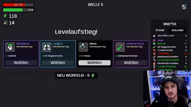 05:36:11Es wird überlegt, welches Spiel für den Abschluss des Streams gespielt werden soll. Rotato wird als gute Option angesehen, da es mit einer Hand gespielt werden kann. Dies ermöglichte es dem Streamer, das Spiel während der Mittagsschläfchen seines Sohnes Levi zu spielen, während er ihn in der Trage schaukelte. Brotato wird als geiles Spiel bezeichnet und war in dieser Zeit das Go-To-Game des Streamers. Levi hat indirekt schon richtig viel Brotato gezockt. Es werden verschiedene DLC-Charaktere vorgestellt, darunter der Matrose und der Zwerg. Der Zwerg kann keine Fernkampfwaffen ausrüsten und erhält einen Technikbonus beim Töten von mindestens sechs Gegnern mit einem direkten Waffentreffer. Alternativ wird Balatro vorgeschlagen, aber als zu zeitaufwendig für einen Run angesehen. Männerlords wird ebenfalls erwähnt, aber der Streamer hat schon lange nicht mehr reingeguckt. Er würde auch gerne Final Fantasy weiterspielen. Für den ausgewählten Charakter, den Matrosen, ist Ausweichen auf 20% begrenzt und Erntemodifikatoren werden um 100% verringert. Maritimwaffen sind jedoch sehr effektiv gegen verfluchte Gegner. Als Waffe wird der Dreizack gewählt. Es wird beschlossen, entspannt auf Stufe 3 zu spielen.