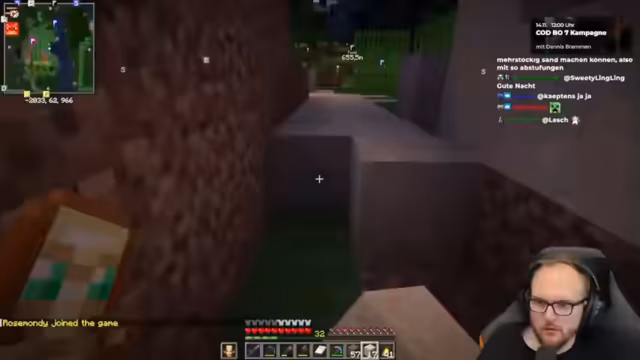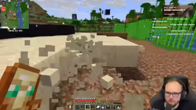 00:41:44Der Streamer räumte weiterhin Bäume und Kakteen vor dem Altenheim auf, um den Vorgarten schöner zu gestalten. Er erwähnte, dass er die erste Folge der Serie „Welcome to Wrexham“ gesehen hatte und sie als teils spannend, aber auch langgezogen empfand. Die Aufräumarbeiten wurden als wichtig erachtet, da die Aussicht für die Bewohner des Altenheims von Bedeutung ist. Es wurde auch die Idee einer Lava-Farm diskutiert, um einen unendlichen Brennstoffvorrat zu haben. Die Lava-Farm sollte idealerweise in der Nähe eines Ortes platziert werden, an dem viel geschmolzen wird, möglicherweise unterirdisch oder in der Nähe von Sparks Eisenfarm. Der Streamer entdeckte, dass sie bereits eine eigene Eisenfarm haben, die 15 Stacks Eisen liefert, was als „stabiles Ründchen“ bezeichnet wurde. Es wurde auch ein Problem mit einem ausgebrochenen Farmer auf dem Feld behoben, der durch einen falsch platzierten Holzblock entkommen war. Der Streamer begann, Stalaktiten für die Lava-Farm zu sammeln und den Bereich um das Altenheim zu begradigen, um eine einheitliche Baufläche zu schaffen. Das Pietsmiet-Logo soll erhalten bleiben und schön in die Umgebung integriert werden.