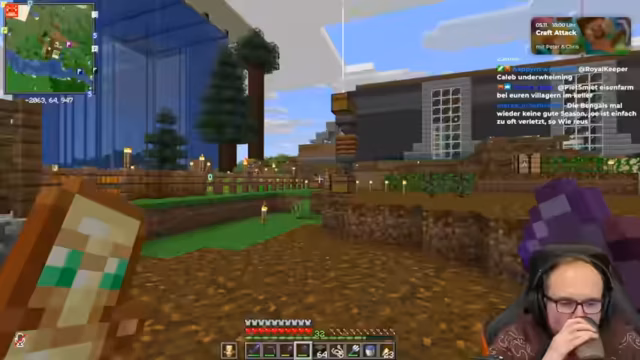 02:03:47Die Dripstone-Farm wird weiter optimiert, und es wird festgestellt, dass die Wassertropfen ein Zeichen für die Funktionalität sind. Der Streamer diskutiert mit dem Chat über die Dauer der Dripstone-Zucht und die Notwendigkeit, weitere Dripstones zu finden oder zu züchten. Es wird über die Platzierung von Lichtblöcken und die Ästhetik des Bauwerks gesprochen. Plötzlich kommt es zu Server-Problemen, die durch einen 'Boot-Prank' von Hugo verursacht werden, bei dem er unzählige Boote spawnt. Dies führt zu Lag und einer Diskussion über Hugos Verhalten im Vergleich zu anderen Streamern wie Monte. Der Streamer äußert seine Enttäuschung über Hugos Aktionen und die Auswirkungen auf den Server. Trotz der technischen Schwierigkeiten wird weiter am Altenheim gebaut, insbesondere an der Küste und dem Sandboden, um einen Strandbereich zu schaffen. Die Notwendigkeit, weitere Ressourcen wie Erde und Sand zu farmen, wird erkannt.
