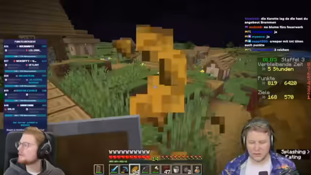 01:07:55Ein Fehler im Drachenkampf wird bedauert, da der Lebensbalken des Drachen nicht beachtet wurde. Der Streamer entschuldigt sich bei Taros und beteuert, keine bösen Absichten gehabt zu haben, sondern lediglich helfen zu wollen. Es wird eine Szene mit Hasen und Ziegen kommentiert, gefolgt von der Erwähnung des Akronyms DLDS, das humorvoll als 'Dildos' erklärt wird. Eine weitere Spielszene zeigt das Einloggen in ein dunkles Feld, wo sofort Monster spawnen, was zu einem knappen Überleben führt. Es wird auch eine Situation beschrieben, in der ein Spieler von zwei Händlern und einem Pillager überrascht wird, während er auf einen Händler fokussiert ist.