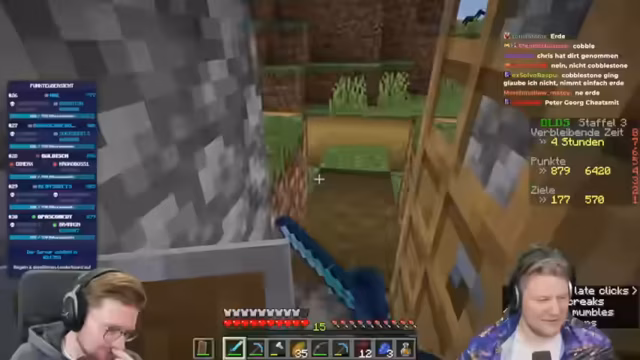 02:29:26Die Spieler planen, sich durch die Decke des Nethers zu baggern, um von dort aus eine Enderperle 100 Meter weit zu werfen, was eine der aktuellen Aufgaben ist. Sie diskutieren die Schwierigkeit, Hoglins zu finden und zu füttern, da diese 10 Punkte geben, während das Töten nur 5 Punkte einbringt. Ein besonderer Bonus wäre es, einen Hoglin in Lava zu stoßen, um antiken Schrott für Netherite-Festungen zu erhalten. Die Suche nach Hoglins gestaltet sich jedoch schwierig, und die Spieler überlegen, ob sie diese Aufgabe überspringen sollten, da ein Rückweg in den Nether nach dem Aufstieg zur Decke problematisch wäre. Sie erreichen 977 Punkte und setzen sich das Ziel, 1000 Punkte zu erreichen, um andere Teams zu überholen.