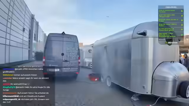 03:35:02Auf Anregung aus dem Chat sprechen die Streamer über die Besichtigung der nächsten Caravanmesse in Düsseldorf, die sich auf Wohnmobile und Camping konzentriert. Sie diskutieren auch die nächsten Pläne für einen Roadtrip. Gegen Ende des Streams erreichen sie die Süßigkeiten-Halle, was sie als eine Art Familienbereich mit Kletterparks und Chill-Out-Zonen beschreiben, bevor der Stream gegen 13:30 Uhr langsam endet.