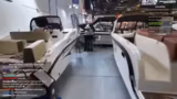 00:19:11Auf der Messe angekommen, erkunden die Streamer die Hallen und stoßen auf verschiedene Aussteller. Ihr erstes Ziel ist der Stand von Schäfer Yachten, wo sie auf eine repräsentative, gut 25 Meter lange Yacht aufmerksam werden. Sie registrieren sich für eine private Führung und einen Rabattcode. Während des Wartens auf die Führung werden Details wie der Preis (1,2 Millionen Euro), der Motor (V10) und Ausstattungsmerkmale wie ein einklappbarer Fernseher und ein Kühlschrank besprochen.