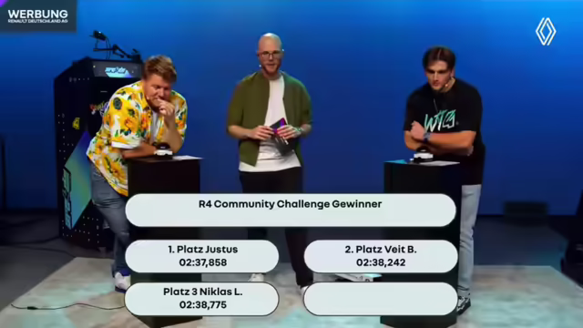 05:15:57Es wird sich bei Renault für die Einladung und die Möglichkeit, den Stream aus dem XPERION in Hamburg zu veranstalten, bedankt. Ein besonderer Dank geht auch an Sintika für ihre Unterstützung und Unterhaltung während des Streams. Marcel wird nochmals zum Gewinn gratuliert. Abschließend wird die CommunityChallenge erwähnt, bei der Justus den ersten Platz belegt. Justus wird nach vorne gebeten und erhält seinen Preis. Es wird auf die Schnuppertage bei Renault-Händlern hingewiesen, bei denen der Renault 4 E-Tech in Augenschein genommen werden kann. Zudem wird ein Baguettehalter als besonderes Feature erwähnt. Abschließend werden musikalische Grüße gesendet und ein schönes Wochenende gewünscht. Es wird noch ein Gewinner für die Umfrage aus dem Studio bekannt gegeben. Der Stream wird beendet.