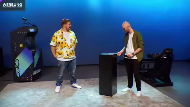 01:30:06Ein Dank geht an Renault für den Einblick und die Möglichkeit, mit dem R4 durch die Gegend zu fahren. Interessierte können den Renault auf der Webseite konfigurieren. Es wird zu Syntica weitergeschaltet, die ein DJ-Set spielen wird. Anschließend startet gegen 18:30 Uhr die abendliche Live-Show von Renault. Es folgt eine herzliche Begrüßung zur Renault 4 Live Show aus dem Experience in Hamburg. Es wird sich als kleines Intro und Warm-up vorgestellt und die Community sowie die Kanäle von PietSmiet und Marcel begrüßt. Die Zuschauer vor Ort werden ermutigt, sich etwas zu trinken zu holen, bevor die Live-Show startet. Bis die Jungs hochkommen, wird noch etwas Musik gespielt. Es wird erklärt, dass man nur den Play-Button drücken muss, um die Musik losgehen zu lassen. Dennis hat den Übergang auch schon gemacht, aber nicht so gut wie ich. Es wird der Chat begrüßt und erwähnt, dass Brammen und Marcel durch Hamburg gefahren sind, um Macarons abzuholen, die gleich gegessen werden. Es wird eine Spielshow auf der Bühne angekündigt, bei der auch das Publikum gebraucht wird. Der Chat kann ebenfalls eingreifen und es gibt etwas zu gewinnen. Es wird darauf hingewiesen, dass es Aktivitäten gibt, an denen man teilnehmen kann.