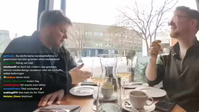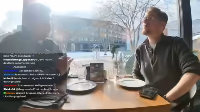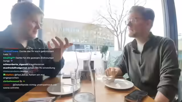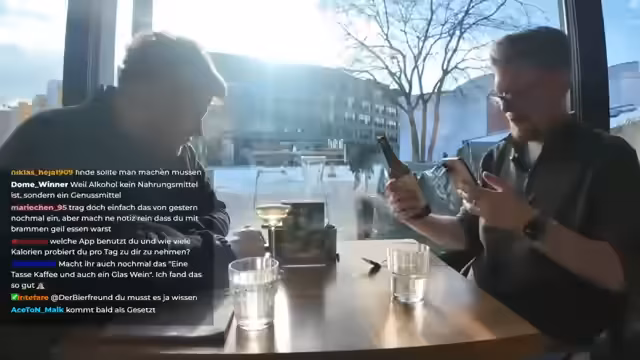 00:01:41Der Stream beginnt mit einer Entschuldigung für die Verspätung, die durch einige unerwartete Ereignisse verursacht wurde. Bram und Dennis mussten einen Krankenwagen rufen und es waren etwa zehn Polizisten vor Ort. Sie beschließen, die Geschichte später zu erzählen, da sie hungrig sind und erst etwas bestellen möchten. Während sie die Getränkekarte studieren, erwähnen sie einen aktuellen TikTok-Trend mit einem alten Lied von Helene Fischer und Florian Silbereisen, das sie eventuell im Stream aufnehmen wollen. Das Restaurant, in dem sie sich befinden, namens Frühstück 3000, bietet neben Frühstück auch Cocktails wie Pornstar Martini und Bloody Mary an, sogar schon ab neun Uhr morgens. Es wird erwähnt, dass die Location vom Freitag bis Sonntag durchgehend geöffnet ist und neben Frühstück auch warme Speisen anbietet. Die beiden überlegen, ob sie Champagner bestellen sollen, verwerfen die Idee jedoch aufgrund des Preises von 400 Euro für eine Flasche. Die anfängliche Verwirrung über den Sound wird diskutiert und behoben, wobei die Mikrofone nun näher an den Sprechern sind als an den Umgebungsgeräuschen, obwohl die Geräuschkulisse des Cafés weiterhin präsent ist.