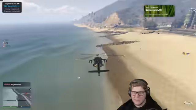 00:00:16Vor dem Start der Challenge kämpfen die Teilnehmer mit technischen Problemen. Brammen berichtet von Schwierigkeiten bei GTA Online, bei denen er auf Serverfehler und fehlerhafte Charaktererstellungen stößt. Nach einer Countdown beginnt das Rennen. Die erste Aufgabe für alle ist 'ein Tier füttern'. Während Brammen und Freddy in ihren Spielen schnell eine Lösung finden, hat Dhalucard Schwierigkeiten und findet keinen passenden Weg, um ein Tier zu füttern, was ihn frustriert und zwingt, zwischen den Spielen zu wechseln.