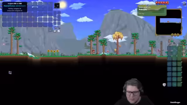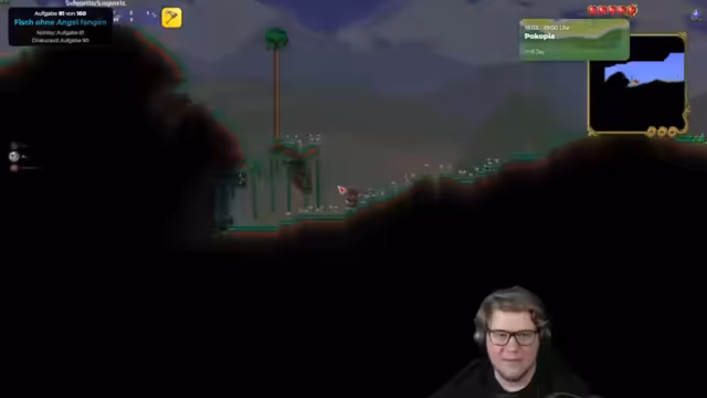 06:48:51Die vorletzte große Hürde ist das Fangen eines Fisches ohne Angel in Terraria. Brammen und @noway4u_sir sind zunächst ratlos und diskutieren verschiedene Möglichkeiten, dar das Beschwören von Fischen oder das Auffangen durch passive Mittel. Brammen probiert verschiedene Methoden aus, wie das Verkaufen von Gegenständen, um das Wetter zu beeinflussen, hat jedoch anfangs keinen Erfolg. Nachdem Brammen eine spezielle Angel aus dem Inventar gefunden hat, die wie eine konstruierte Angel aussieht, aber in Wirklichkeit nur ein passiver Fischfang-Mechanismus ist, ist die Gültigkeit im Chat umstritten. Schließlich fängt Brammen durch das Platzieren dieser 'Angel' am Fluss einen Fisch, was als Lösung für die Challenge anerkannt wird.