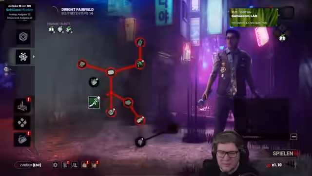 01:25:45Die Aufgabe, einen Schlüssel zu finden, führt zu Dead by Daylight. Im Custom Game kann man alle Items mitnehmen, was die Debatte um die Definition von 'finden' neu entfacht. Ein Chatvorschlag schlägt vor, im Blutnetz nach Schlüsseln zu suchen, indem man Blutpunkte ausgibt. Dies wird als legitime Methode anerkannt, da das Suchen im Menü als aktives Finden gewertet wird, auch wenn der Gegenstand nicht zufällig auf der Map liegt.