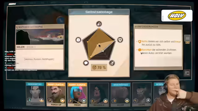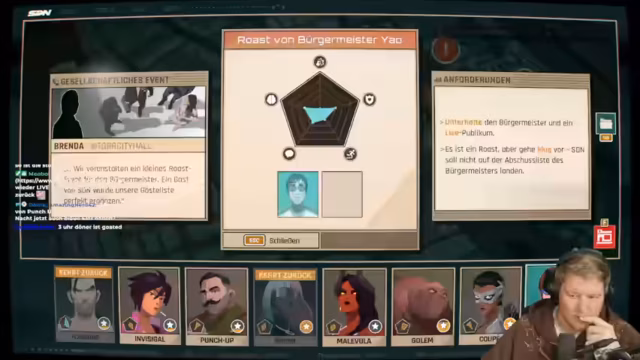 00:30:53Der Streamer spricht eine deutliche Spoiler-Warnung aus und droht mit Timeouts und Banns für Zuschauer, die spoilern. Die Spieler konzentrieren sich dann wieder auf das Spiel Dispatch und die Auswahl der Charaktere für verschiedene Missionen. Es werden Attribute wie "magnetische Persönlichkeit" (Charisma), "Auge für Talente" und "gut mit Kindern" diskutiert. Die Spieler müssen strategische Entscheidungen treffen, um die richtigen Helden für die jeweiligen Aufgaben auszuwählen. Die humorvollen Kommentare über die Fähigkeiten der Charaktere und die Herausforderungen des Spiels tragen zur Unterhaltung bei. Die Diskussion über die Effektivität der verschiedenen Attribute zeigt die strategische Tiefe des Spiels.