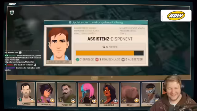 00:03:47Der Streamer kündigt den Beginn von Dispatch Episode 5 mit dem Titel "Teambuilding" an. Die Zuschauer werden auf eine spannende neue Episode vorbereitet, in der es um die Verwaltung von Superhelden und deren Fähigkeiten geht. Die Spieler müssen Entscheidungen treffen, welche Helden sie für verschiedene Missionen einsetzen, wobei Attribute wie Charisma, Intelligenz und Kampfstärke berücksichtigt werden. Die Diskussion über die Auswahl der Helden und die Zuweisung von Fähigkeiten zeigt die strategische Tiefe des Spiels. Es werden humorvolle Kommentare über die Stärke der Helden und die Notwendigkeit, die richtigen Kombinationen zu finden, ausgetauscht. Die Spieler sind gespannt, was in der neuen Episode passieren wird, und freuen sich auf die Herausforderungen, die das Spiel bietet.