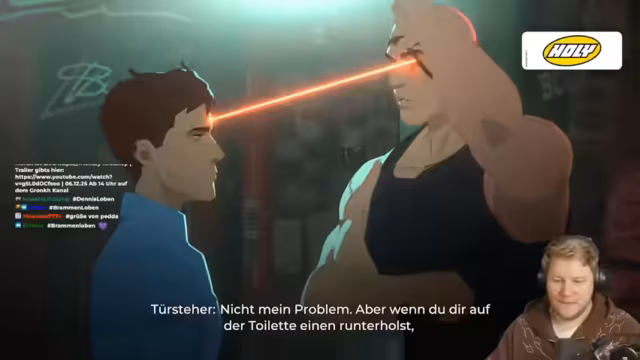 00:51:27Eine Unterhaltung über Beziehungen eskaliert, als Bramm denkt, Helden dürften keine Liebesbeziehungen haben. Das Thema wechselt zu Einsamkeit in der Community, als viele Chat-Teilnehmer angeben, keine Freunde zu haben und das zu bedauern. Bramm initiiert daraufhin neue Discord-Kanäle mit dem Titel "Freundschaft plus Zocken", um den Nutzern einen sicheren Ort für soziale Kontakte zu bieten.