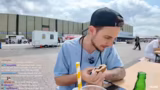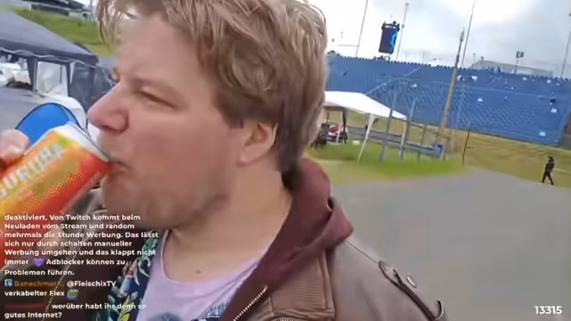 00:59:46Der Stream beginnt mit authentischem Werbegeflüster und dem gemeinsamen Erlebnis vom legendären Rock am Ring von Dennis Kraft. Es folgen persönliche Anekdoten über schwere Situationen bei Festivals, wie plötzliche Verletzungen und die Fürsorge der Streamer füreinander. Sie befinden sich auf dem Campinggelände von Rock am Ring, erkunden die Umgebung und planen ihren Tag, wobei sie die Streams für den Vormittag (Brammen) und Nachmittag (Sep) ankündigen.