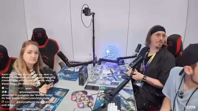 04:30:38Der Fokus verlagert sich auf den Magic: The Gathering-Stand, der als besonders beliebt und gut beschildert beschrieben wird. Nach kurzer Suche wird die Creator-Ecke gefunden, wo auch die Synchro Area für die Synchronsprecher eingerichtet ist. Hier hat der Streamer das Glück, den Creator Dalu anzutreffen, mit dem er ein spontaner Duo-Stream startet. Das Gespräch mit Dalu dreht sich um die verschiedenen Magic-Sets, Spielarten wie Commander und die Möglichkeit, Karten aus unterschiedlichen Franchises wie Iron Man oder Final Fantasy zu mischen, was die Komplexität und Attraktivität des Spiels unterstreicht.