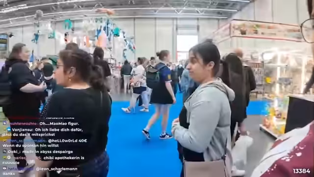 05:42:20Während des Spazierganges über das Messegelände unterhält sich die Sprecherin mit ihrem Chat und anderen Besuchern. Sie erwähnt, dass sie bekannte Persönlichkeiten wie Jesse von Figuja und Mikey Jax trifft, teilt Anekdoten über teure und seltene Figuren, die sie bewundert, und beschreibt ihre eigene Erfahrung im 18-Bereich, den sie bewusst meidet, da dieser für sie nicht infrage kommt. Sie vergleicht auch ihren heutigen Aufenthalt mit anderen Veranstaltungen wie der Gamescom und der Gamescom.