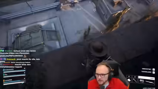 00:00:00Der Livestream beginnt mit Jay, Bram, Sebastian und Peter, wobei Jay die Zuschauer begrüßt und das unvorhersehbare Gameplay des Streams hervorhebt. Die Spieler starten in eine Runde, die schnell chaotisch wird. Jay berichtet, wie er von einem Hirsch überfahren wurde und sein Fahrzeug explodierte, während seine Mitspieler ohne ihn weiterfuhren. Diese frühen Momente sind geprägt von Missgeschicken und humorvollen Kommentaren, wie Jays unglücklicher Formulierung über einen Herzinfarkt, die als Material für zukünftige Witze dient. Die Gruppe findet sich in einem Gefängnisgebiet wieder, wo Jay Schwierigkeiten hat, seine Teamkollegen zu finden und sich orientiert. Die anfänglichen Schwierigkeiten und das schnelle Ableben der Charaktere prägen den Start der Session und zeigen die Herausforderungen des Spiels.