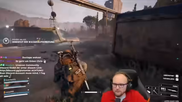 00:06:05Die Gruppe beschließt, im 'Freeloot'-Modus zu spielen, in dem man keine Ausrüstung verlieren kann, um das Spiel entspannt zu lernen und Spaß zu haben. Der Streamer teilt mit, dass er bereits Level 32 ist, während seine Mitspieler unterschiedlich erfahren sind. Der Fokus liegt auf der Bewältigung von Quests und dem Sammeln von spezifischen Ressourcen wie Akkus und Kabeln. Die Stimmung ist grundsätzlich kooperativ, es werden Pläne für gemeinsames Vorgehen in Loot-gebieten geschmiedet. Trotzdem gibt es erste unangenehme Begegnungen mit anderen Spielern, was zu Diskussionen über das Vertrauen in der Community führt.