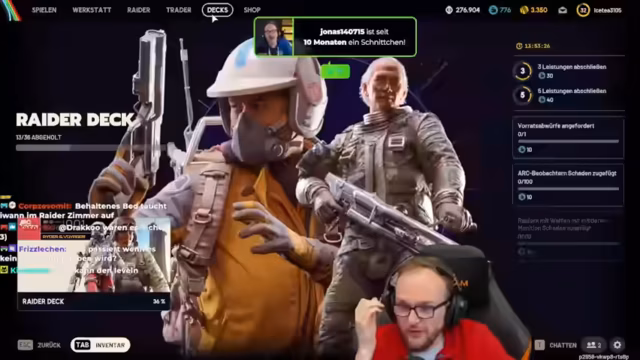 01:15:14Ein Spieler entdeckt, dass er Football-Klamotten finden kann, die er zuvor bei einem anderen Spieler gesehen hatte. Neue Quests beinhalten das Besuchen eines 'Felddepots' und das Gewinnen eines PvP-Kampfes. Ein Spieler benötigt weiterhin 'Spitzel' und eine 'Feuerkugel-Granate'. Die Gruppe begibt sich auf eine neue Karte, um ein 'Felddepot' zu finden, das ein bestimmtes Gebäude ist, das repariert werden muss. Währenddessen wird ein 'Bio-Scanner' und eine 'Gummi-Ente' gefunden. Ein Spieler jagt ein 'Bellaken', das immer wieder entkommt, während die anderen sich nicht in einen Dreier-Team-Kampf stürzen wollen. Es wird 'geiler Loot' in einem Versteck gefunden. Die Verfolgung des 'Bellaken' erweist sich als anstrengend und riskant, da sie befürchten, von einem anderen Team angegriffen zu werden. Nach einem zähen Kampf gelingt es ihnen, das 'Bellaken' zu zerstören, das einen 'Beobachtertresor' enthält, aus dem Baupläne erhofft werden. Ein Spieler benötigt schwere Munition, die von einem anderen Spieler angeboten wird, der nur leichte Munition verwendet. Die Gruppe muss weiterhin 'Spitzel' jagen und 'Überwachungskameras' zerstören.