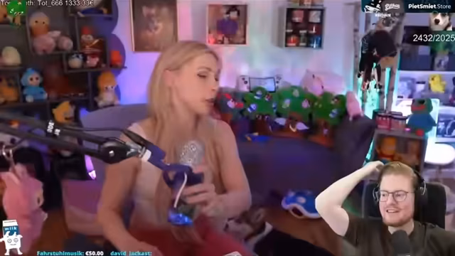 00:15:49Es wird ein Spiel namens Paddle erwähnt, das von einem deutschsprachigen Entwickler erstellt wurde, der sich über die Aufmerksamkeit von Bram und Jay freute. Der Streamer findet solche Geschichten herzerwärmend. Es folgt eine Diskussion über den eskalierten Geburtstagsstream und einen möglichen Tauschhandel mit Kadidddi gegen Formula Lena. Die Beziehungen zwischen Matteo, Sonja und Kim werden thematisiert, wobei spekuliert wird, dass Matteo ein Aufreißer ist und Kim durch ihr Interesse an ihm Sonjas Eifersucht wecken könnte. Der Streamer scherzt über anzügliche Themen und betont seine Unschuld und Produktivität, während er gleichzeitig Aufgaben erledigt. Es wird über Kaddi gewitzelt und ihre humorvolle Art gelobt, was zu Überlegungen führt, ob sie aufgrund ihrer Beliebtheit 'losgeworden' werden muss.