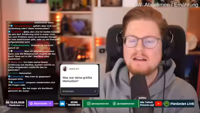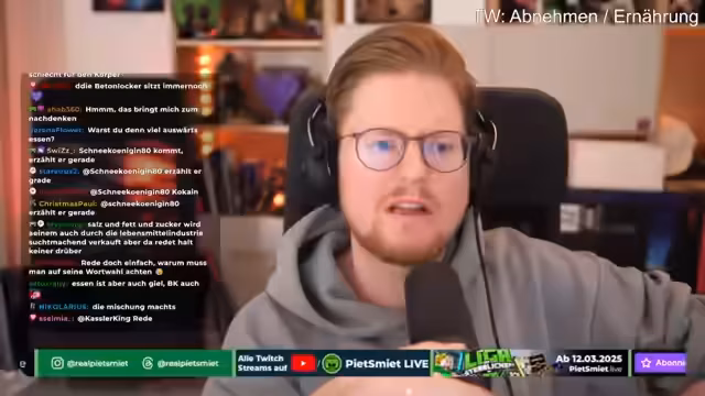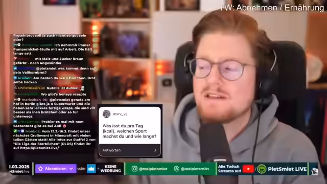03:16:50Im Stream wird betont, dass die Ernährungsweise individuell sei und der Streamer keine direkten Vorschriften geben wolle. Sein eigener Weg sei als Inspiration gedacht. Als wichtiger Faktor wird genannt, dass regelmäßiger und ausreichender Schlaf essentiell sei. Die nächtliche Nahrungsaufnahme wird als suboptimal beschrieben, da der Körper in einer Regenerationsphase sei. Es wird dringend empfohlen, sich von Ernährungsexperten und Ärzten beraten zu lassen, anstatt sich auf allgemeine Tipps aus dem Internet zu verlassen.