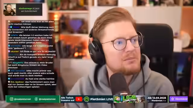 01:10:16Der Streamer äußert seine Vermissen an kurzen und knackigen Highlights und bittet um Feedback zu den langen Zusammenschnitten. Es wird die Einführung eines React-Kanals auf YouTube thematisiert, der jedoch seit Tagen inaktiv ist. Eine wichtige Diskussion dreht sich um die Schwierigkeiten, feste Streamzeiten für fünf Personen zu etablieren, da viele dagegen sind, was die Planung erschwert. Der Streamer betont den Wunsch nach mehr Abwechslung und Koop-Inhalten, sieht aber durch private Zwischensachen und Absagen eine große Herausforderung darin, dies umzusetzen.