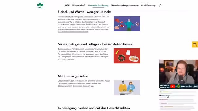 01:53:05Der Streamer kritisiert die Vorgaben der Deutschen Gesellschaft für Ernährung (DGE) als zu undurchführbar und für seinen Muskelaufbau ungeeignet. Empfehlungen wie 0,8 Gramm Protein pro Kilogramm Körpergewicht hält er für viel zu gering. Stattdessen plädiert er für pragmatische und persönliche Anpassungen, die in den Alltag passen. So ist sein Hauptziel, gesunde Lebensmittel wie Obst, Gemüse und Hülsenfrüchte vermehrt zu konsumieren, ohne sich starr an starre Vorgaben wie 'fünf Portionen Obst und Gemüse täglich' zu klammern. Der Genuss der Mahlzeiten steigt durch den bewussten Verzicht.