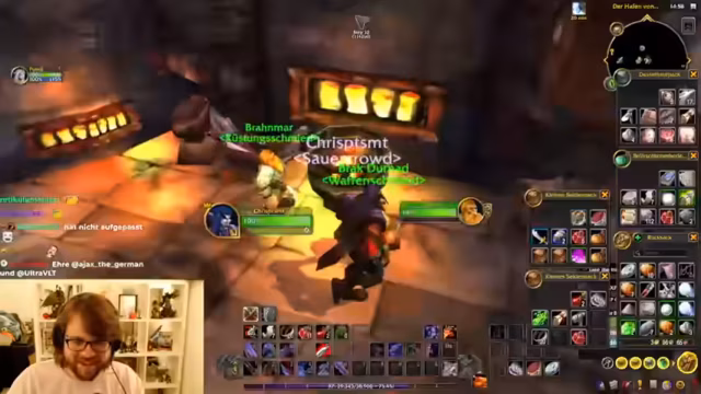 05:23:12Zu Beginn des Stream-Ausschnitts beschäftigt sich der Streamer intensiv mit der Suche nach einem Healer für einen geplanten Dungeon-Besuch. Er identifiziert ein Mangel an verfügbaren Heiler im Levelbereich, besonders da Jen, die einzige passende Spielerin, bereits im Silberwald unterwegs ist. Nachdem Kontaktaufnahmen via WhatsApp nicht erfolgreich waren, wird Henke per Telefon angerufen, um ihn für das Dungeon zu gewinnen. Parallel dazu wird der Dungeon Burg Schattenfang als Ziel ausgemacht, wobei die Strategie und die möglichen Herausforderungen wie der Boss Arugal diskutiert werden.