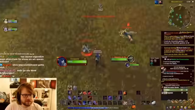 07:51:59Es werden Nachrichten vom Hardcore-Server geteilt, bei denen viele Spieler, darunter Meloni und Kulisi, an einer bestimmten Quest gestorben sind. Die Ursache wird auf einen falschen Call während eines Frostnova-Zaubers zurückgeführt, was viele Tode auf Panik zurückführt. Der Fokus liegt auf der Rivalität zwischen den Fraktionen der Nachtelfen, Menschen und Zwerge. Dalu führt die Menschen an, während die Nachtelfen den zweiten Platz belegen. Die Fraktion der Nachtelfen überlegt, eine "unheilige Ehe" mit den Gnomen einzugehen.