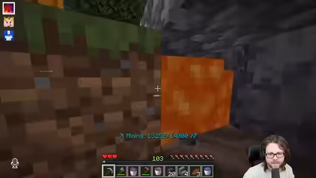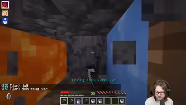 01:56:47Ein verpatkter Klick führt zum Verlust von 121 Erfahrungspunkten, was für die Streamer extrem frustrierend ist. Dennoch besteht die Gruppe aus und betont den Wert der unzerbrechlichen Spitzhacke, die sie erhalten haben. Sie sammeln weiter Basalt, um eine zweite Spitzhacke zu kaufen und entdecken eine Taktik, um bei der Farmung XP-Drops einfangen zu können. Parallel wird ein Sniffer-Ei gefunden, das sie ins Wasser zurücksetzen.