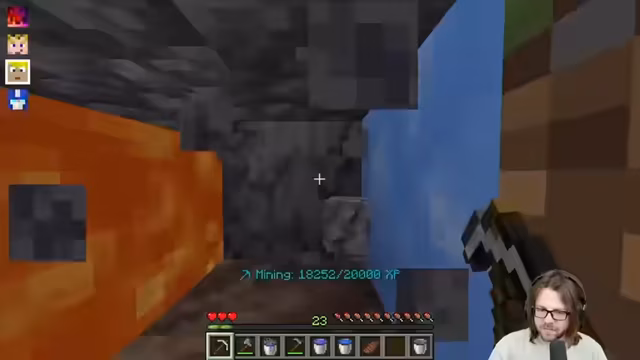 01:41:55Es wird überlegt, wofür man Sparks ausgeben könnte, möglicherweise für Tiere zur Nahrungsproduktion. Peter hat seine ersten 500 Sparks bereits abgefarmt und dafür nur Level erhalten. Die Gruppe vermutet, dass die nächste Spitzhacke die käufliche Spitzhacke für komprimierte Materialien sein wird. Christian erhält durch Mining 10 Erfahrungspunkte. Er hat versehentlich etwas kaputt gemacht und die Liga zerstört. Die Gruppe diskutiert über eine Taktik, um zu verhindern, dass abgebautes Material in die Lava fällt. Christian verliert Soulsoil durch Lava und muss sich konzentrieren, um dies zu vermeiden. Er fühlt sich wie in einem Klicker-Spiel und bevorzugt es, den Knopf gedrückt zu halten anstatt zu klicken. Christian hat 20 komprimierte Basalt und die Gruppe insgesamt 11. Peter hat 4.000 Erfahrung und Christian überholt ihn. Christian erhält 4 Mining-XP pro abgebauten Basalt. Er leidet unter Schwindel durch die ständige Drehung. Die Gruppe diskutiert über die Effizienz ihrer Anordnungen und darüber, wie Material in die Lava fällt.