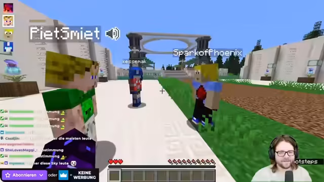 00:00:00Der Stream beginnt mit der Begrüßung der Zuschauer und der Vorstellung der Streamer Christian, Piet und Sep. Es wird das neue Projekt „Minecraft Elements 3“ angekündigt, das von Spark of Phoenix organisiert wird und verschiedene Streamer vereint. Das Ziel ist ein MMO-ähnlicher Minecraft-Server, der durch Gruppenziele und Stufen (Villager) neuen Content freischaltet. Streamer und Zuschauer starten zunächst im zentralen Hub, um sich mit den Grundlagen des Spiels vertraut zu machen.