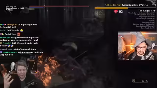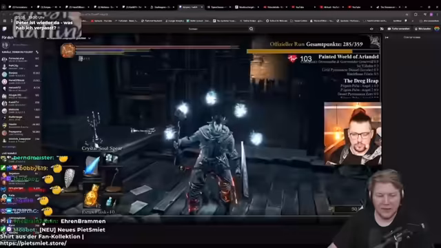 00:00:35Der Stream startet mit einem lockeren Nachmittag, der sich hauptsächlich um Dark Souls dreht. Der Streamer schaut sich Runs von anderen Teilnehmern wie Leon und Hanno an, besonders bei Soulkeepers. Da sein eigener Run gescheitert ist, dient der Stream als gemütliches Zusammenseitzen mit dem Chat. Geplante Inhalte sind das Anschauen von Elden Ring Night Rain bei Maxim um 16 Uhr und später um 19 Uhr die Übernahme durch Peter, der von seinem Urlaub berichten wird.