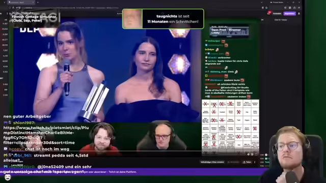 04:33:40Es wird über die Verleihung des deutschen Computerspielpreises (DCP) gesprochen, bei dem FF-Lena einen Sonderpreis gewann. Der Streamer lobt deren Engagement für eine inklusivere Spielebranche. Gleichzeitig wird die Reden bei der Preisverleihung angesprochen, insbesondere die kritischen Anmerkungen zu Machtmissbrauch in der Branche, und wie schwierig es ist, sich öffentlich zu äußern, um gegen Missstände anzugehen.
