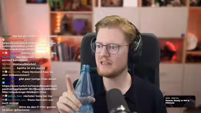 05:20:03Der Streamer bittet die Zuschauer, Clips in den Chat zu posten. Er möchte wissen, ob etwas Wichtiges auf Twitch Deutschland passiert ist, insbesondere über die Terraria-Season, die in seiner Abwesenheit gestartet ist. Kurze Nachrichten werden wie 'Breaking News: Jay is Dinge' angesagt. Es werden Clips von anderen Streamern wie Max Verstappen und Franz Hermann angesehen, und der 13. Gang von Jay ist ein wiederkehrendes Thema.