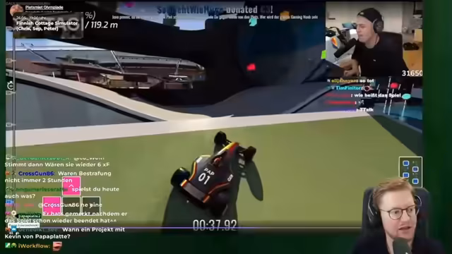 00:37:10Nachdem der Plan für den Nachmittag etwas ins Stocken gerät, schaut der Streamer sich spontan verschiedene Dinge an. Er stößt auf ein absurdes, künstlich generiertes Video über den Zweiten Weltkrieg, das humorvoll und zugleich verstörend ist. Dies führt zu einer humorvollen, aber auch nachdenklichen Diskussion über Logistik und die Art der Darstellung. Später kommentiert er ein von Chat-Mitgliedern eingereichtes, kurzes Animation über französische Geschichte und fragt sich, ob das altersgerecht ist, auch wenn es witzig ist.