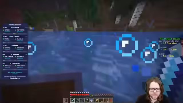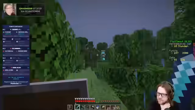04:08:41Die Gruppe diskutiert die notwendigen Gegenstände für die bevorstehende Erkundung, einschließlich Fläschchen für den Atem und einem Fernglas. Es wird festgestellt, dass eine spezielle Version des Fernglases benötigt wird, da Optifine nicht genutzt werden kann. Die Spieler navigieren durch die Landschaft, wobei einer der Spieler versehentlich weiterläuft und von Skeletten beschossen wird. Es werden Ressourcen wie Schoppelgrifffisch und Glowing eingesammelt, wobei der Fokus auf der Beschaffung von Gunpowder für spätere Vorhaben liegt. Die Gruppe entscheidet sich, vorerst keine Creeper zu bekämpfen, sondern sich auf den Bau zu konzentrieren, während sie von allen Seiten beschossen werden. Sie bauen einen Turm, um sich vor den feindlichen Angriffen zu schützen und die Umgebung besser überblicken zu können. Die Diskussion dreht sich um die Verwendung von Tropical Fish und Berries als Nahrungsquelle, wobei notiert wird, welche bereits konsumiert wurden. Es wird festgestellt, dass Sweet Berries noch benötigt werden und überall zu finden sein sollen. Die Spieler tauschen sich über ihre Ausrüstung aus und planen, Creeper zu markieren oder mitzunehmen, sobald sie gesichtet werden. Einer der Spieler äußert den Wunsch, sich die Koordinaten der Festung und des Portals zu notieren, um später darauf zurückgreifen zu können. Es wird vereinbart, dass ein Screenshot zur Sicherheit erstellt wird.