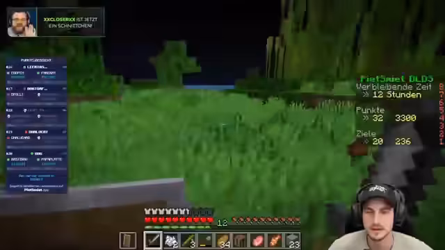 01:24:51Es wird nach Nahrung gesucht und versucht, Fische zu fangen. Es wird festgestellt, dass ungewöhnlich wenige Tiere unterwegs sind. Es wird über den Hungerverlust diskutiert und vermutet, dass ein falscher Modus eingestellt sein könnte. Ein Lachs wird gefangen, was einen Fortschritt bringt und Kartoffeln als Belohnung gibt. Es wird festgestellt, dass die Monster bereits spawnen, obwohl es noch nicht Nacht ist. Ein Zombie wird für einen Fortschritt getötet. Es wird über die Schwierigkeit des Spiels gesprochen und die Fullbright-Mod erwähnt. Es wird nach einem Dorf gesucht und überlegt, ob man Boot fahren soll. Ein zerstörtes Portal wird als potenziell nützlich angesehen. Es wird vermutet, dass der Start mit Eisen und Kohle kein Zufall war. Kürbisse werden mitgenommen, da sie als Schienbeinschoner dienen. Es wird ein Run-Portal entdeckt. Eine große Savanne sollte eigentlich ein Dorf haben. Es wird Gold gefunden. Ein Lieferdienst bringt etwas vor die Tür. Es wird kurz disconnectet, um ein Geburtstagsgeschenk entgegenzunehmen.