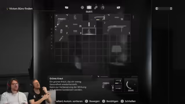 08:15:12Der Streamer versucht, ein Kombinationsschloss an einem Koffer zu knacken, wobei er nach japanischem Prinzip Jahr, Monat, Tag beschriftet. Die Buchstaben sind B, R, S, N, U, C. Nach kurzer Verwirrung wird die richtige Reihenfolge identifiziert. Zeitgleich wird die Charakterin Rebecca Chambers vorgestellt, deren Biografie im Spiel zu lesen ist. Ihre Waffe, eine angebliche Gaming-Brille, wird als Weskers Brille identifiziert, die man nur an Requiem anbringen kann.