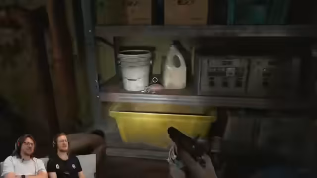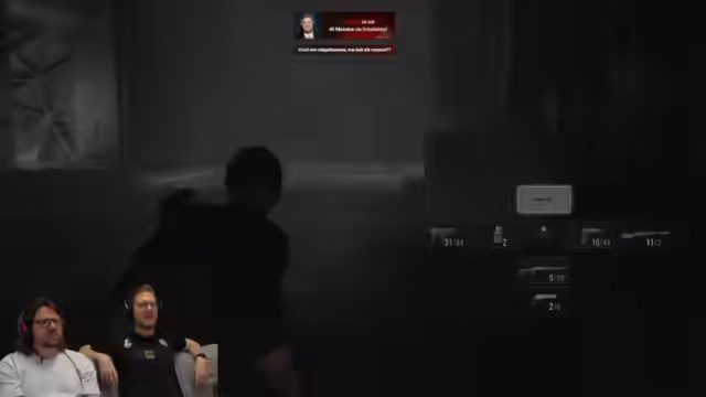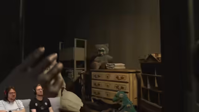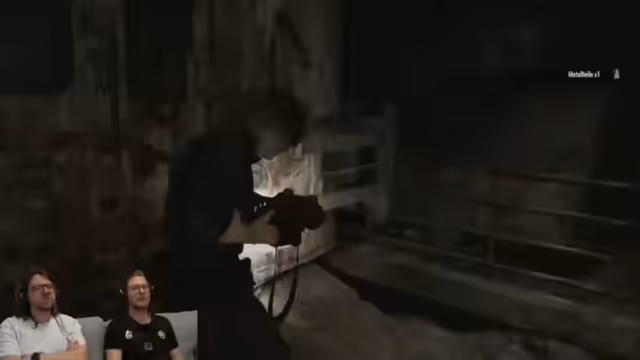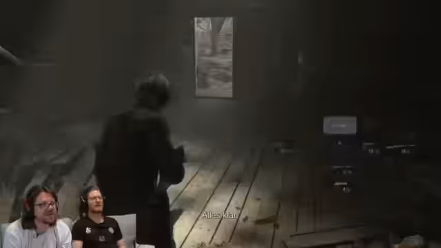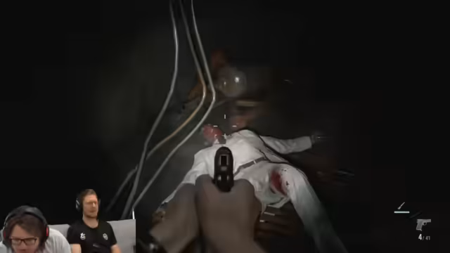 08:24:41Die Verwirrung um die Identität der gespielten Figur Grace steigt, da sie einerseits Emily ähnelt, aber älter sein muss. Über die Herkunft von Emily und ihrer Zwillingsschwester wird spekuliert. Im nächsten Moment werden die Spieler von Entities angegriffen und müssen sich verstecken. Die Szene erinnert den Streamer an eine aus Resident Evil 2, was die Charakterverwirrung noch verstärkt.