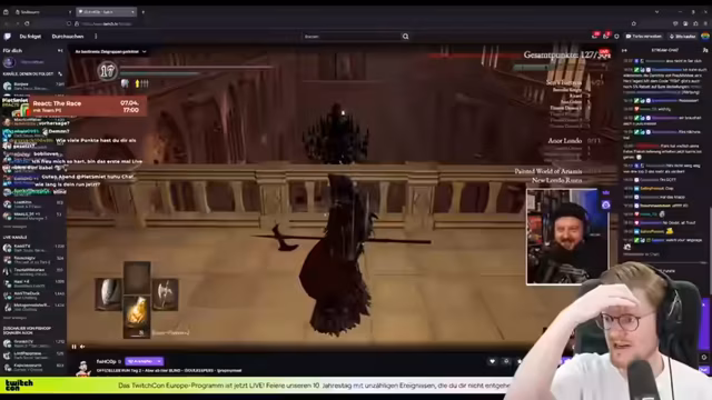06:40:33Gegen Ende des Streams wird deutlich, dass der PoE2-Run im Kontext eines größeren Events, dem 'Soulkeepers'-Run von Peter Schmiedt, stattfindet. Es werden die Statistikpunkte der anderen Teilnehmer (Peter mit 28 Punkten) erwähnt. Der Streamer gibt zu, dass Chris sich im Run sehr gut schlägt und aktuell bei 5 Punkten liegt. Die Diskussion über den anspruchsvollen 'Black Knight' in Souls-ähnlichen Spielen zeigt, dass der PoE2-Stream Teil eines größeren Gaming-Universums ist und auf das breitere Publikum abzielt, das auch andere Action-Rollenspiele kennt.