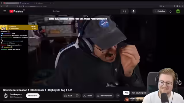 08:48:51Es wird über zukünftige Dark Souls 1 No Death Runs gesprochen und dass es dann eine Tanzmalle geben wird. Der Streamer spricht über unerwartete Tode und Schwierigkeiten im aktuellen Run, entschuldigt sich bei Zuschauern für Fehler und bedankt sich für deren Unterstützung. Es wird ein Highlight angekündigt und der Streamer scherzt über das Erzählen von Geschichten bei Soulkeepers, was eigentlich nicht erwünscht ist. Der Titel des Streams wird als Spoiler thematisiert, aber als notwendig erachtet, um ständige Nachfragen im Chat zu vermeiden. Der Streamer freut sich über eine "Du-Schaffst-das-Tüte" und bedankt sich für die Unterstützung. Ein Bug im Spiel wird entdeckt und kommentiert, und es wird gehofft, dass ein anderer Spieler den gleichen Bug erlebt.
