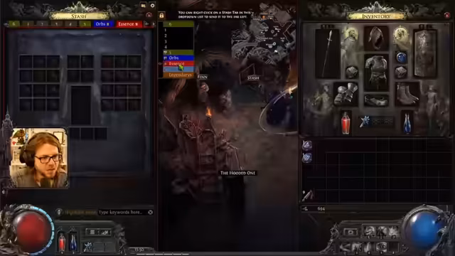 01:42:43Die Smithing Tools werden endlich gefunden. Es wird erklärt, wie man mit den Tools Sockelmaterialien bekommt und die Salvage Bank nutzt, um gesockelte Sachen kaputt zu machen und Orbs zu erhalten. Es wird erklärt, wie Item Building funktioniert, indem man erst Stats auf die Items orbt und dann daraus Rare Items macht, die mehr Stats haben können. Es wird erklärt, dass Rare Items bis zu sechs Stats haben können. Es wird ein Magic Item zu einem Rare Item upgegradet und Fire Resistance drauf bekommen. Es wird nach Cold Resistance gesucht, da dies benötigt wird. Es wird erklärt, dass es schade ist, dass es keinen Stash für Charms gibt. Es wird Fogge Manor betreten, das als nicht so leicht beschrieben wird. Es wird die Kombo aus Rechtsklick, E, Q, R geübt. Es werden die Monster mit den Zungen als nervig beschrieben, da sie einen verlangsamen.