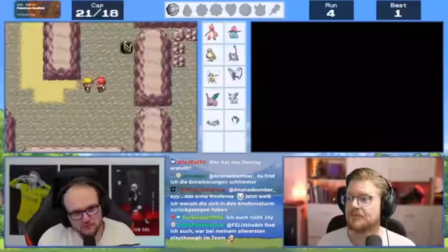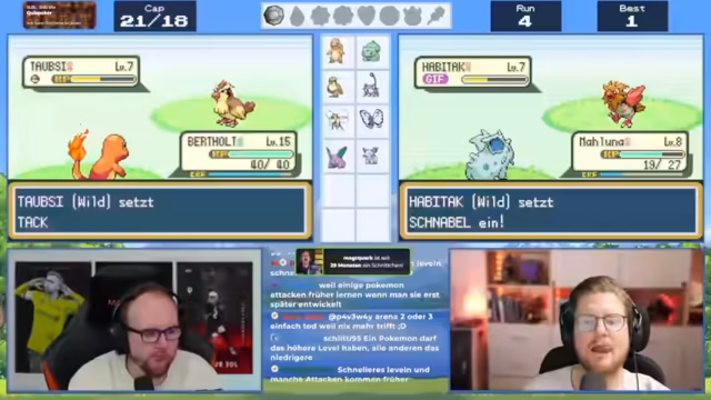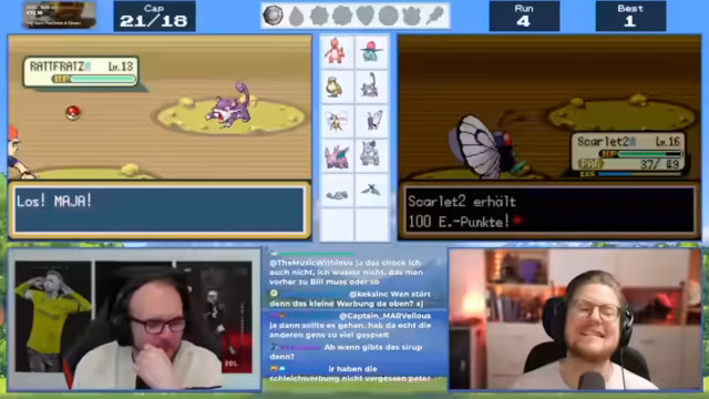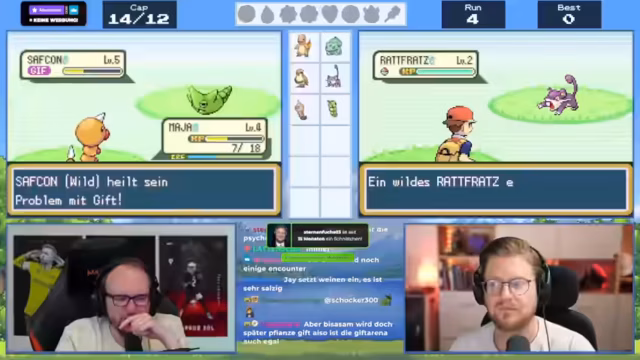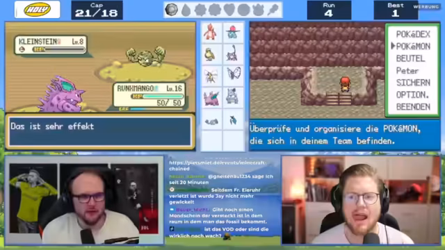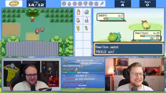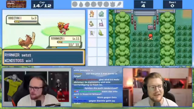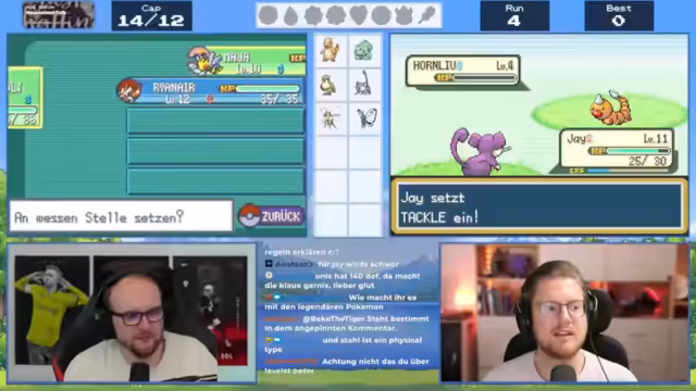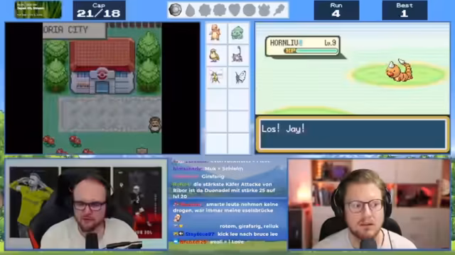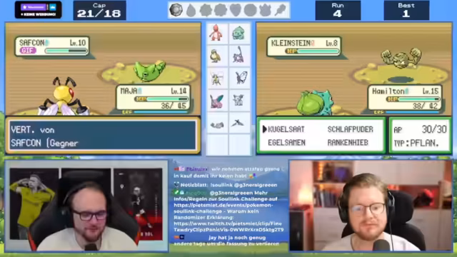 00:10:04Die beiden Streamer entwickeln während des Streams eine Spielstrategie, konfrontiert aber mit erheblichen Herausforderungen. Pedda hat Pech mit seinen Pokémon-Wahlen und kämpft mit schwachen Attacken wie Tackle und Giftstoß. Jay hingegen zeigt mehr Taktikverstand, nutzt aber ebenfalls grundlegende Kenntnisse über Pokémon-Typen. Das Level-Capping erweist sich als zusätzliche Schwierigkeit, da Pokémon nicht über das der Arenaleiter hinaus leveln dürfen. Pedda frustriert über wiederholte Missgeschicke und Pech, besonders bei Volltreffern.