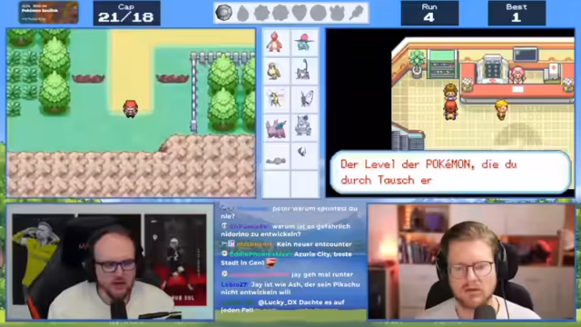03:35:19Die Streamer diskutieren über die Erfahrungspunkte in ihren Pokémon-Kämpfen und stellen fest, dass das Leveln vorankommt, aber auch Risiken birgt. Sie erwähnen die Gefahr von Volltreffern und wie sie diese umgehen können. Jay scheint in seiner Pokémon-Sucht so vertieft zu sein, dass er seine Körperfunktionen vergisst. Sie plänchen, ihre Pokémon auf bestimmte Level zu bringen, bevor sie in neue Gebiete wie den Mondberg aufbrechen.