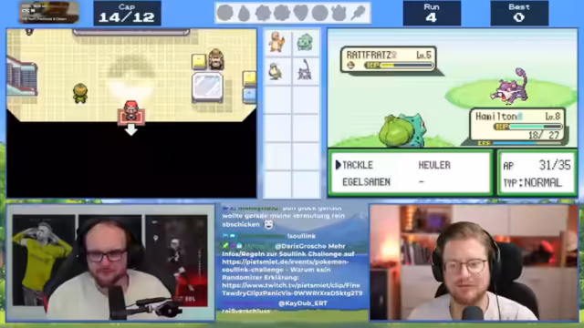 00:00:00Der Stream beginnt mit dem Motto 'SOULLINK mit Jay & Pedda !soullink ptsmt !homepage'. Jay und Pedda starten eine Pokémon-Souling-Challenge, eine besondere Variante des Nuzlocke-Regelwerks. Dabei sind die Pokémon der beiden Spieler durch Seelen verbunden, stirbt ein Pokémon bei einem Spieler, ist auch das entsprechende Pokémon beim anderen Spieler besiegt. Die Herausforderung besteht darin, das Spiel mit diesen restriktiven Regeln zu meistern, wobei sie maximal das Level der Arenaleiter erreichen dürfen und nur das erste auf jeder Route gefangene Pokémon verwenden können.