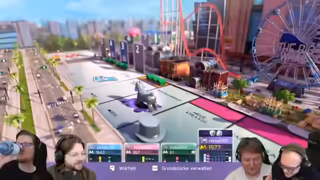 01:55:58Das Monopoly-Spiel nimmt den Hauptfokus ein, mit kontroversen Entscheidungen und strategischen Fehlern. Peter wird für seine hypothekarisierte Immobilie kritisiert, während Jonas als Parken-Sieg gefeiert wird. Der Verlauf des Spiels wird als legendär und wild beschrieben, was für unterhaltsame Momente sorgt. Nach dem Spiel wird der weitere Ablauf des Streams besprochen und eine Pause angekündigt.