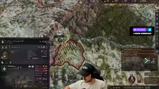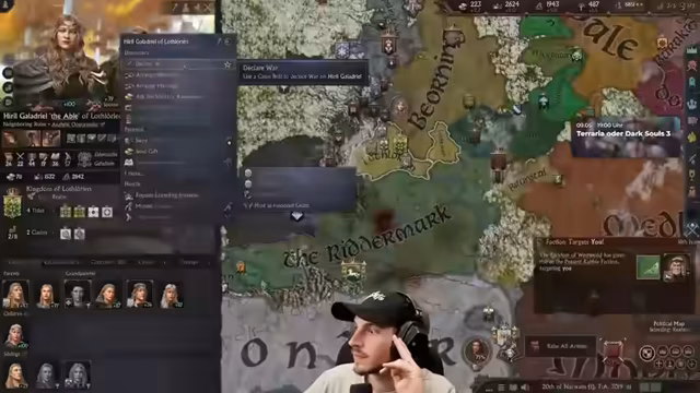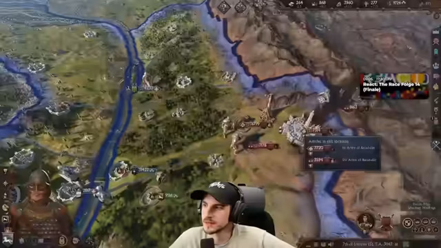 01:51:47Nach dem verlorenen Krieg gegen Sauron konzentriert sich der Streamer auf die Wiederherstellung seiner Macht und den Umgang mit den Folgen. Es kommt zu einem überraschend positiven Event bei einem Pferderennen mit seinem Sohn. Die neuen Stressmechaniken des Spiels werden als sehr teuer empfunden. Die Möglichkeiten zur Freundschaftsbildung und Allianzen sind eingeschränkt. Gleichzeitig kämpft er mit Seuchen, die seine Ressourcen binden, und internen Machtkämpfen, insbesondere mit seinem ehrgeizigen Sohn Boromir.